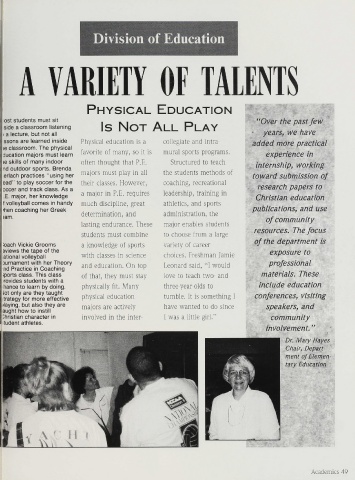 .E. major, her knowledge a major in P.E. requires leadership, training in Christian education