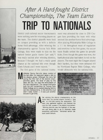 championship against Toccoa Falls Bible and overtime in the first game, the soccer