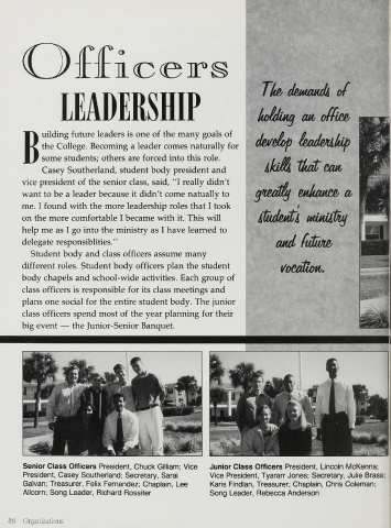Senior Class Officers President, Chuck Gilliam; Vice Junior Class Officers President, Lincoln McKenna;