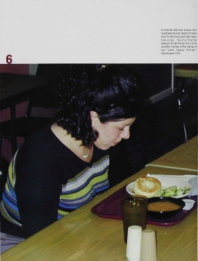 Christina Barlow bows her head before her meal to thank God for the food and His many blessings. “Giving thanks always for all things unto God and the Father in the name of our Lord Jesus Christ.” Ephesians 5:20