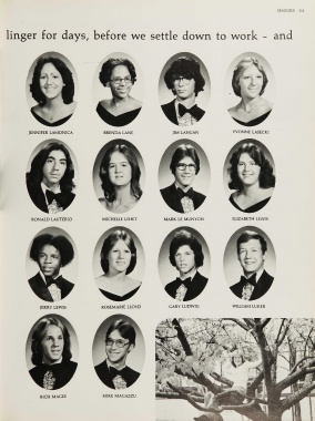 SENIORS 111 linger for days, before we settle down to work - and JENNIFER LAMONICA BRENDA LANE JIM LANGAN YVONNE LASECKI RONALD LAUTERIO MARK LE MUNYON ELIZABETH LEWIS JERRY LEWIS ROSEMARIE LLOYD GARY LUDWIG WILLIAM LUKER RICH MAGEE MIKE MAGAZZU