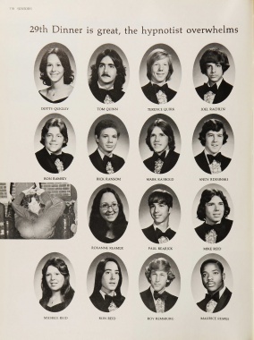 118 SENIORS 29th Dinner is great, the hypnotist overwhelms DOTTY QUIGLEY TOM QUINN TERENCE QUIRK JOEL RACHLIN RON RAMSEY RICK RANSOM MARK RAYBOLD ANDY RDESINSKI ROXANNE REAMER PAUL REARICK MIKE REID MICHELE REID RON REID ROY REMSBURG MAURICE RESPES