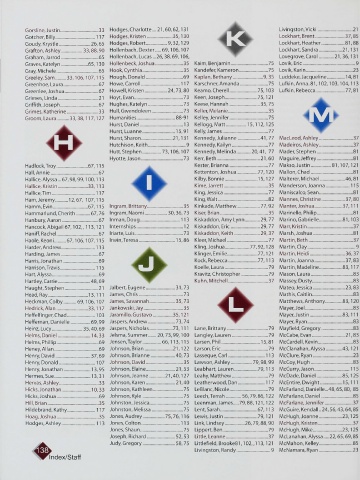 Graham, Jarrod..........................65 Hollenbach, Lucas ...26,38,69,106, Loveg rove, Ca ro l.....21,36,131