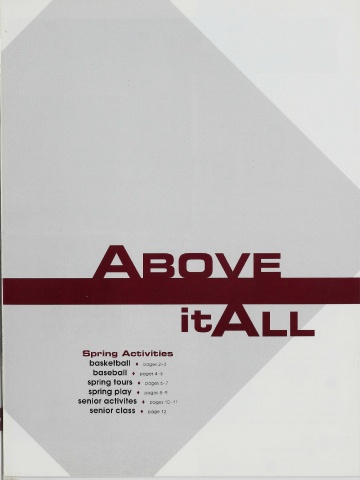 Spring Activities basketball ♦ pages 2-3 baseball ♦ pages 4-5 spring tours ♦ pages 6-7 spring play ♦ pages 8-9 senior activites ♦ pages /\ 0- /\ 1 senior class ♦ page 12