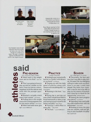 work with the younger guys." ♦"Running in the heat." Ryan play my last season of baseball,
