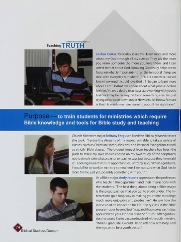 Church Ministries major Brittany Ferguson liked the Biblically based classes