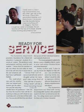 needed from the professors. "I like the departm ent was filled with caring, Spanish is a language that
