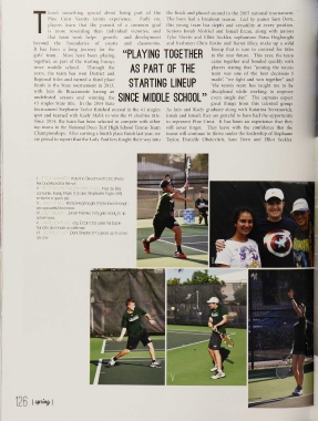 finish in the State tournament in 2013, STARTING LINEUP “the tennis team has taught me to be