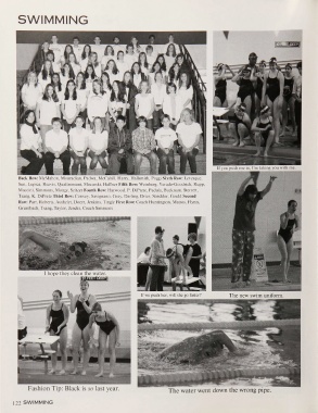 SWIMMING Fashion Tip: Black is so last year. The water went down the wrong pipe. 122 SW IM M IN G