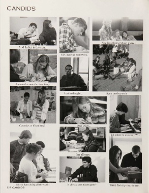 CANDIDS And Juliet is the sun... Ceramics or Chemistry? Why is Sam doing all the work? Is chess a one player game? Time for my manicure. 154 C A N D ID S