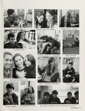 Rockin' Pantene Pro-V is great! "Confucious say..." Open Sesame! M y heart belongs to you... Yale's Admissions Brochure Need an iPod? Cam needs her java "So, what's your take on the economic downturn?" W hat is that? C A N D ID S 155