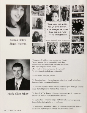 Mark Elliot Sikov To the staff of The Quaker -- there are no adequate words to report my