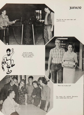 junioR You bit me one more time and you’ll be sorry. Jack, be nimble, And Jack, be quick; And, Jack, jump over The Candlestick. Who’s the weaker sex? You mean the student directories cost a nickel more this year?