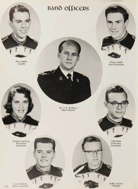 Ban6 officers Steve Smith Wayne Smith Captain First Lieutenant Mr. J. R. McEntyre Band Director Barbara Sperberg Toby Hart Woodwind Percussion Lieutenant Lieutenant Larry Johnson Bobby Barlow Brass Lieutenant Chaplain