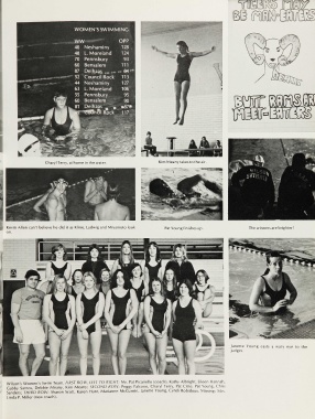 Wilson's Women's Swim Team. F I R S T R O W , L E F T T O R I G H T : Mr. Pat Picariello (coach), Kathy Albright, Eileen Hannah,