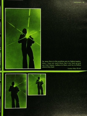 Far away there in the sunshine are my highest aspira tions. I may not reach them, but 1 can look up and see their beauty, believe in them, and try to follow where they lead. Louisa May Alcott