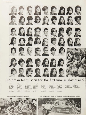 Freshman Holland Moore joins Wilson Band. Diane Derr and Karen Fishman are among the Freshmen eager to join the Pep Club.