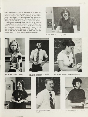 MRS. LINDA HALLY . biology, rap room. MR. THOMAS BARADZIEJ general science, MR. RICHARD COHEN physics,