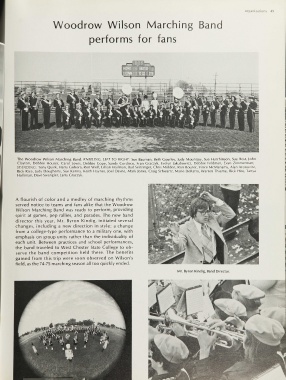 The Woodrow Wilson Marching Band. K N E E L I N G , L E E T T O R I C h I T : Sue Bauman, Beth Gourley, Judy Mountjoy, Sue Hutchinson, Sue Bost, John