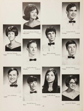 Patti Ann Schmidt ‘Patti” Business Michael Schwarz “Swatz” Academic Terrv Seilhamer Linda Selevitz ‘Adolf” Art ‘Linda” Business Ronald Shannon Joanne M. Sharkey ‘Ron” Academic “Jo” ' Tech 108