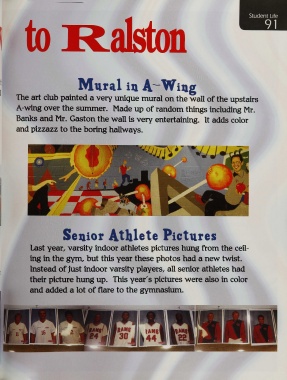 Last year, varsity indoor athletes pictures hung from the ceil