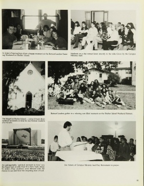 St. John's Prep teachers share a happy moment on the Retreat Leaders Train Students on a day retreat listen intently to the talks Given by the Campus