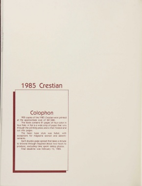 900 copies of the 1985 Crestian were printed