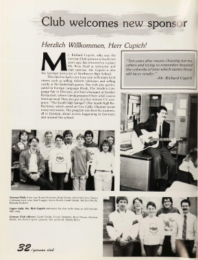 Upper right, Mr. Rich Cupich entertains his class as he sings an old German