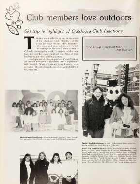 Upper left, Outdoors Club: back row, Brenda Dysart, Tony Dutcher,