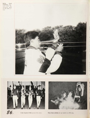 Junior Scott Chapman prac tices with the marching band on the field at 7 a.m. I \ \ Color Guard of 1969 presents the colors. These three witches stir up trouble in a 1967 play. V