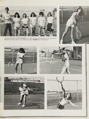 TEA M 'S SEMIORS: LEFT TO RIGHT: Jim Ellis (coach), Shiryll Bartz, Vicky Armstrong, Karen Flynn, Myra Yetter, Louise Wilson (coach). MISSING: Tori McChesney.