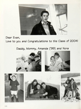 Dear Evan, Love to you and Congratulations to the Class of 2004! Daddy, Mommy, Amanda (‘99) and Nora 338
