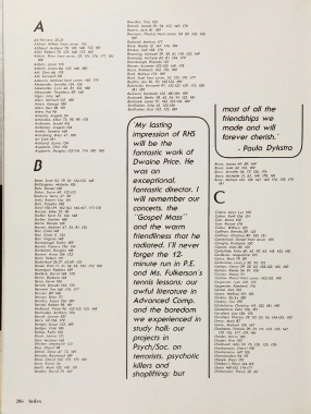 Berrger, Vicki 106 study hall; our Chaddock, Patricia 29. 31, 111, 133, 135, 147.