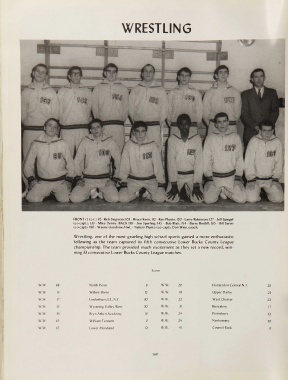 (co-capt); 180 - Wayne Goodrow-, Hwt. - Nelson Plunto (co-capt); Don Wise, coach.