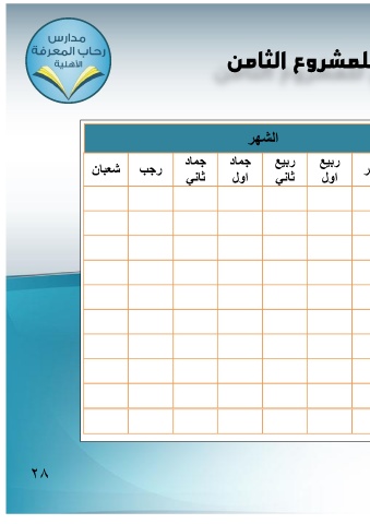 للمشروع الثامن الشهر رجب شعبان جماد جماد ربٌع ربٌع فر ثانً اول ثانً اول 28 133