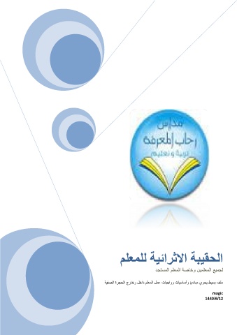 الحقيبة الاثرائية للمعلم لجميع المعلمين وخاصة المعلم المستجد ملف بسيط يحوي مبادئ وأساسيات وواجبات عمل المعلم داخل وخارج الحجرة الصفية magic 1440/6/12