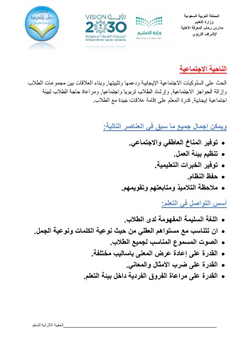 وإزالة الحواجز الاجتماعية ,وإرشاد الطلاب تربويا واجتماعيا ,ومراعاة حاجة الطلاب لبيئة