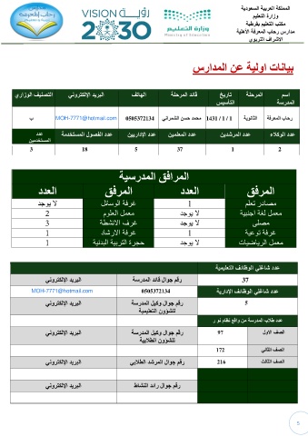 البريد الإلكتروني رقم جوال قائد المدرسة عدد شاغلي الوظائف التعليمية