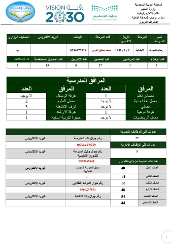 البريد الإلكتروني رقم جوال قائد المدرسة عدد شاغلي الوظائف التعليمية