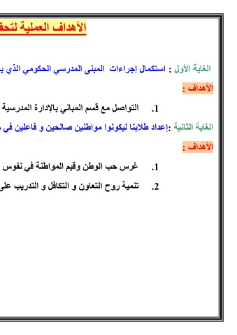الغاية الأول :استكمال إجراءات المبنى المدرسي الحكومي الذي يح