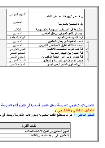 التحليل الاستراتيجي للمدرسة يمثل عنصر أساسيا في تقويم أداء المدرسة