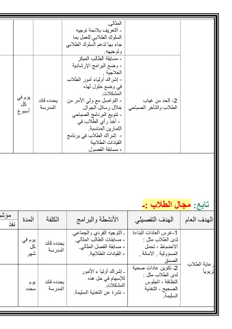 مؤشر المدة الهدف العام الهدف التفصيلي الأنشطة والبرامج الكلفة
