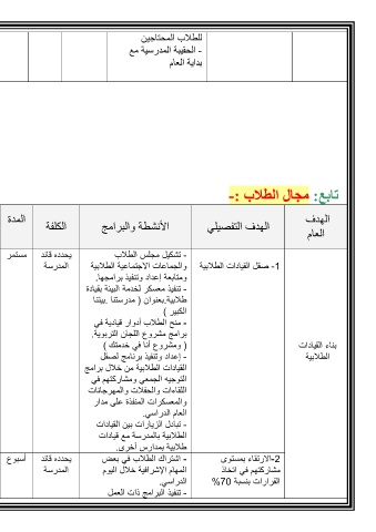 مستمر يحدده قائد -تشكيل مجلس الطلاب -1صقل القيادات الطلابية بناء القيادات