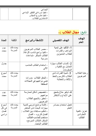 المدرسة محدد -حصر الطلاب الموهوبين. -1التأكيد على تنمية رعاية الطلاب