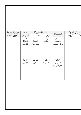 تحقيق الهدف الخارجي نفذ لم ينفذ