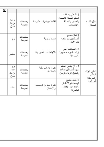 يومين يحدده قائد لقاءات ونشرات متنوعة -1التحلي بصفات تمثل القدوة