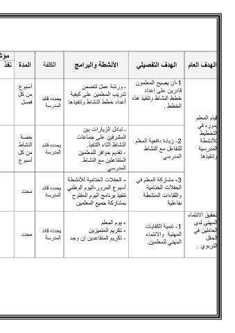 أسبوع يحدده قائد ـ ورشة عمل تتضمن -1أن يصبح المعلمون