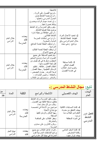 خلال العام المدرسة ـ أدراج حصة النشاط ضمن برنامج زمني محدد