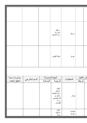 مؤشرات نسبة الدعم الخارجي الجهة المسؤولة المتطلبات شر التنفيذ