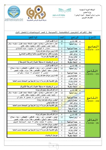 وفق التقسيمة بكل مدرسة +زيارة خارجية بين المجمعات حسب الحاجه 2